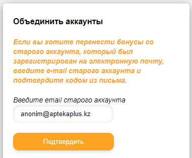 Далее в открывшейся форме нужно ввести почту-логин прошлого аккаунта и нажать кнопку Подтвердить. Также у клиента могли быть еще аккаунты через социальные сети, тогда сайт ему автоматически предложит их связать, если к этим соц. сетям привязана та же почта.