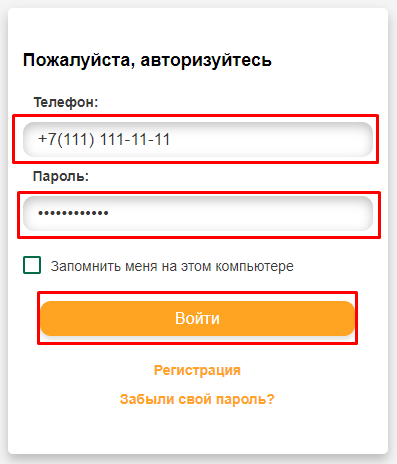 3. В открывшейся форме авторизации нужно ввести логин, пароль и нажать на кнопку Войти