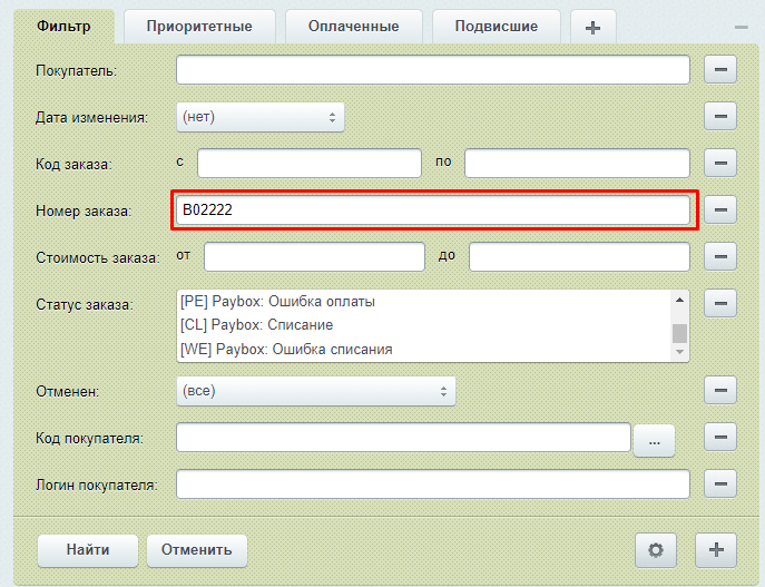 Если по логину так и не получилось найти пользователя, то переходим по ссылке https://aptekaplus.kz/bitrix/admin/sale_order.php?lang=ru и в поле Номер заказа вписываем номер, указанный клиентом. Номер вписывается в формате B11111 без сторонних символов, проверьте отсутствие других параметров в фильтре