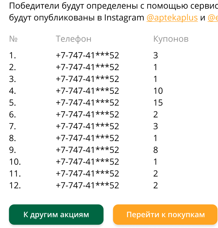 Люди добавляются в список в порядке выполнения заказов. Если человек не нашел себя в списке, в первую очередь нужно проверить статус заказа, если заказ в статусе "Выполнен", тогда *нужно попросить его обновить страницу акции.