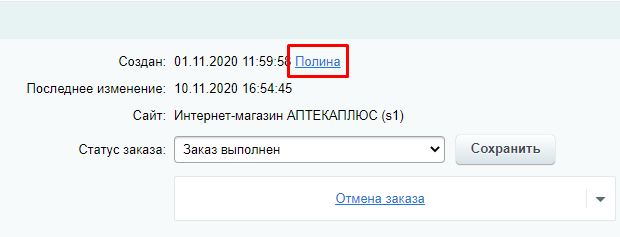 Далее перейдите в заказ и нажмите на имя клиента около даты создания