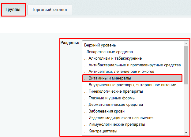 8. Далее во вкладке Группы нужно выбрать нужный раздел или подраздел