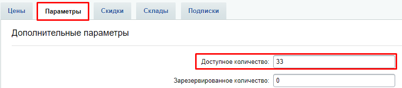 10. Далее в этой же основной вкладке Торговый каталог, переходим во вкладку Параметры и устанавливаем доступное количество