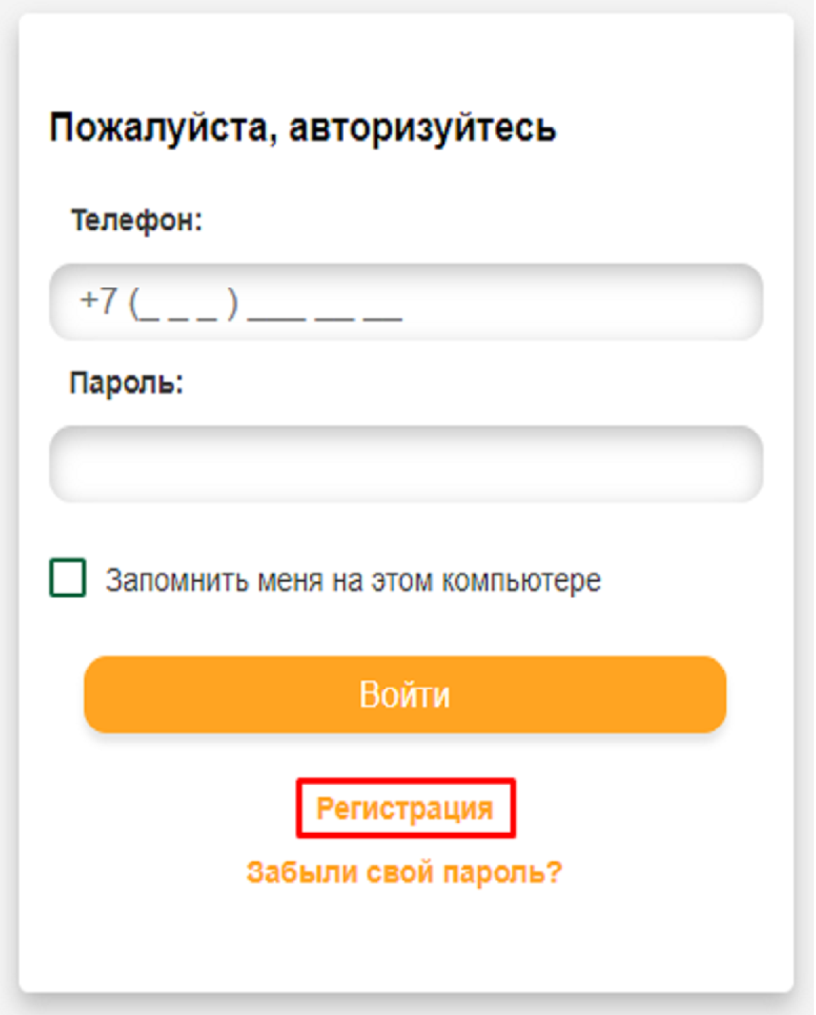 3. В открывшейся форме авторизации нужно нажать на кнопку Регистрация